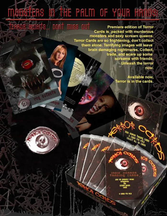 Terror in the palm of your hands. Collect all your favorite horror icons and scream queens from your favorite mainstream and indie horror films. These cards are so scary, don't open them alone!
