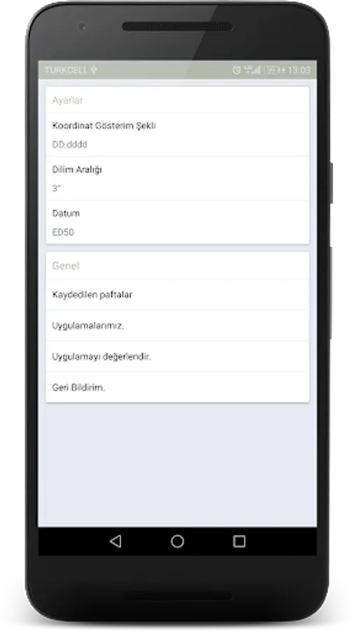 You can set the coordinate display to degree minutes in seconds or decimal. You can change the slice range to 3 degrees or 6 degrees. The application does not only work with geographical coordinates, but also provides coordinate information in the ED50 datum.