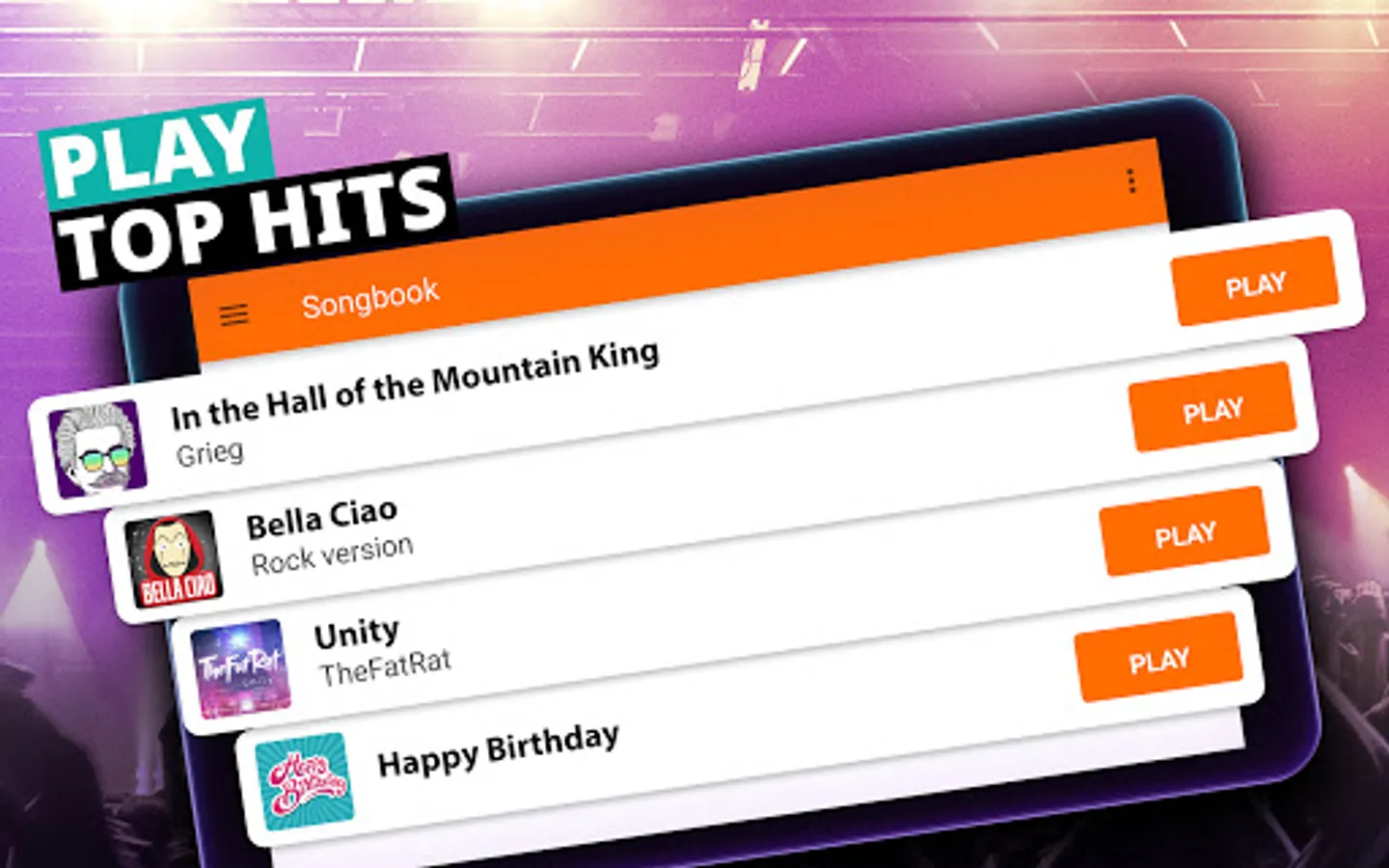 ACHIEVE: Keep up the tempo to earn the highest score ever! Hear the crowd cheering. Thatβs what it feels like to be a real musician on stage! Perform an encore to better that score!