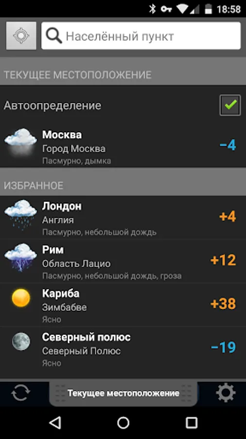 ✔ Current weather all over the world (temperature, wind, air pressure etc.);
