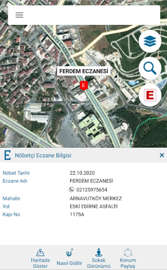 Pharmacies, hospitals, schools, mosques etc. in Arnavutköy. You can query the information and get directions.
