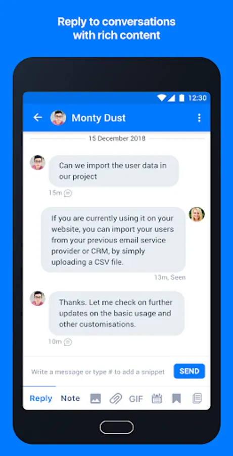 Gist is designed to feel simple and familiar to your customers, so they can talk to you like they talk to their friends and family. Your visitors and customers can have real, engaging conversations with your team no matter where they are - inside your app, on your website, or via email.