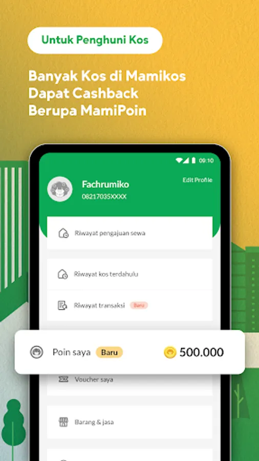 - MamiPoin: Pay your rent via Mamikos and get cashback in the form of MamiPoin! Collect MamiPoin as much as you can and use it as your additional discounts in your upcoming kos bills. 1 MamiPoin = Rp1!