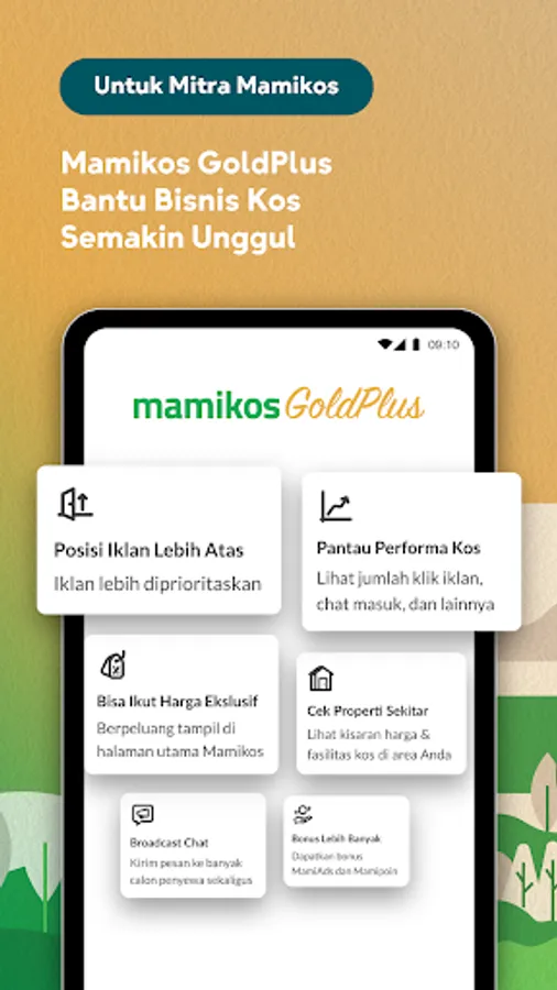 - Mamikos GoldPlus: Not only helping owner to manage their property and maximize their income, but GoldPlus program also provide life and property insurance, optimize booking and billing feature (currently available for selected GoldPlus level only).