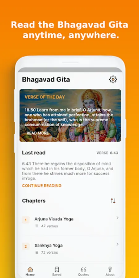 You can also continue reading from where you left off on the app. The app keeps track of your reading history to help you get the best experience from this Bhagwad Geeta learning app.
