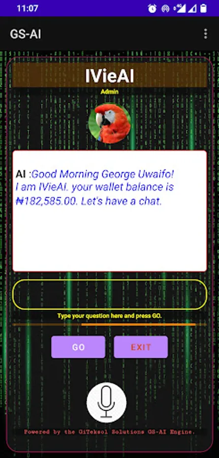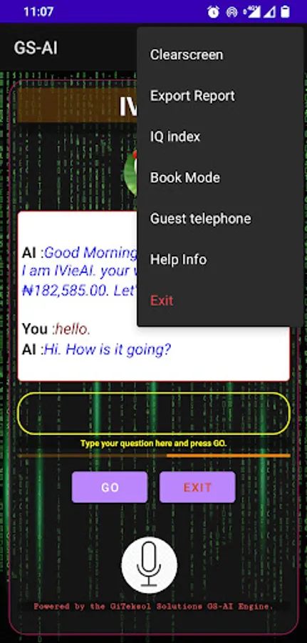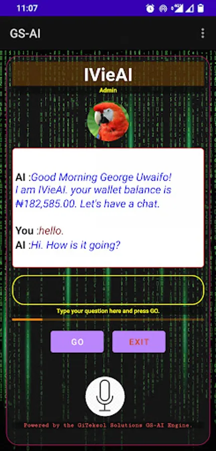 This AI engine is a platform and engine for building conversational AIs. The IVieAI is the default AI built by GiTeksol Solutions Limited which rides on the GS-AI engine. It has a growing parameter base for a wide variety of questions in order to facilitate a smooth conversation between the AI and the user. You can come in as a Guest by tapping on the "No-Acct" selector or you can create your own account by signing up.