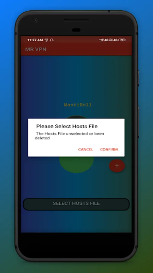 3. Open MR VPN app. click the button at the bottom of the scree , now select the hosts file which you created or downloaded from Internet.