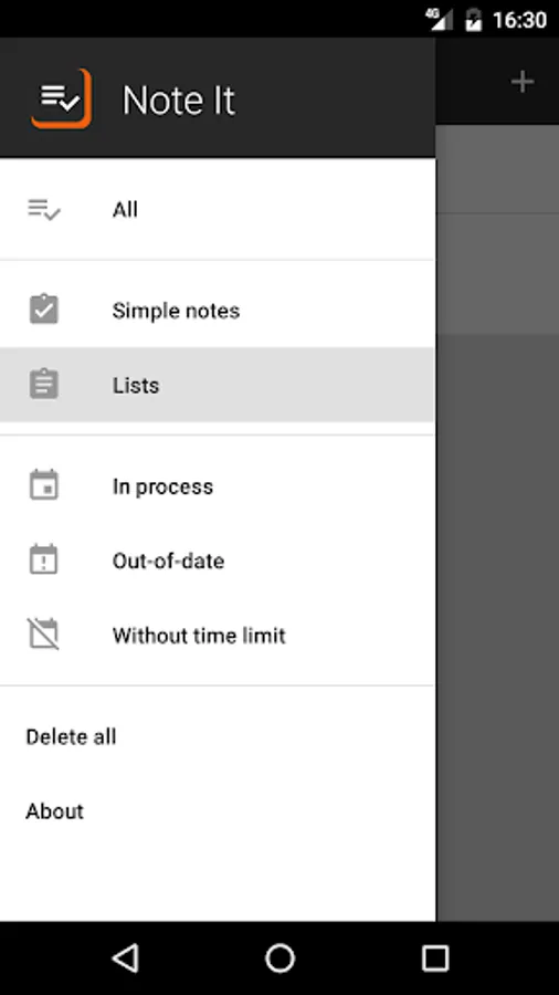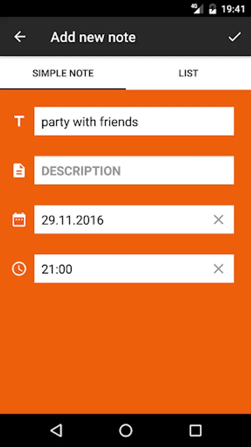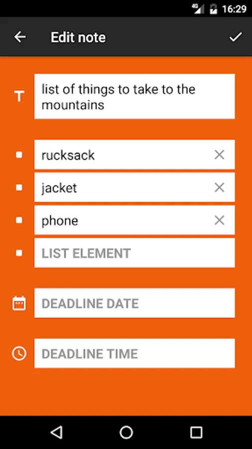 Note It allows you to create both simple notes and lists. Each of the them has fields like: