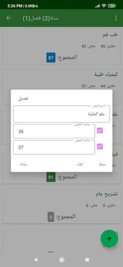 تطبيق معدلي مخصص لطلاب الجامعات في سورية لحفظ علامات المقررات في مسيرة حياة الطالب الجامعية.