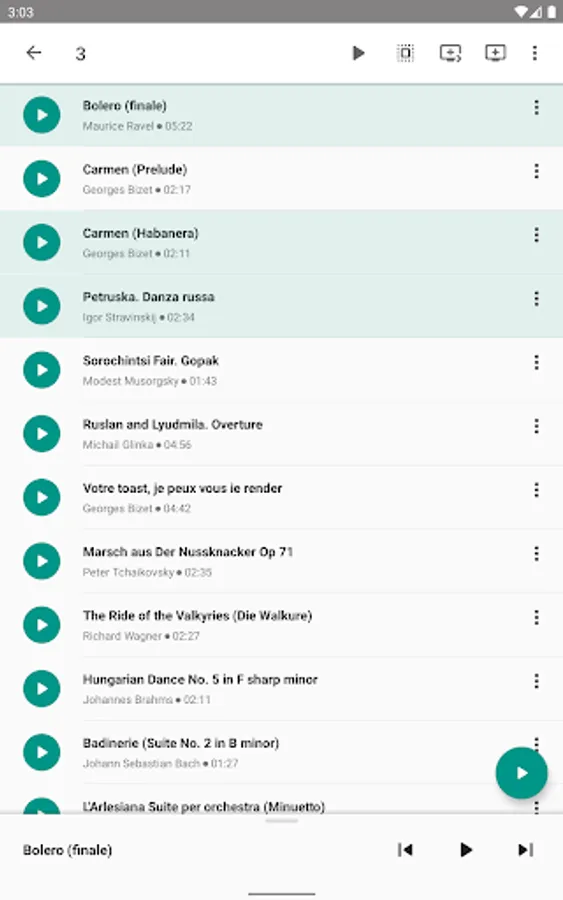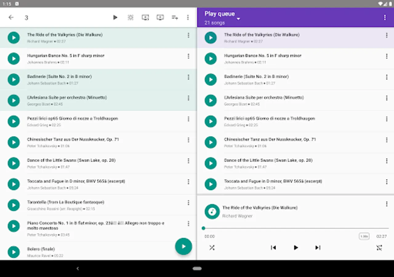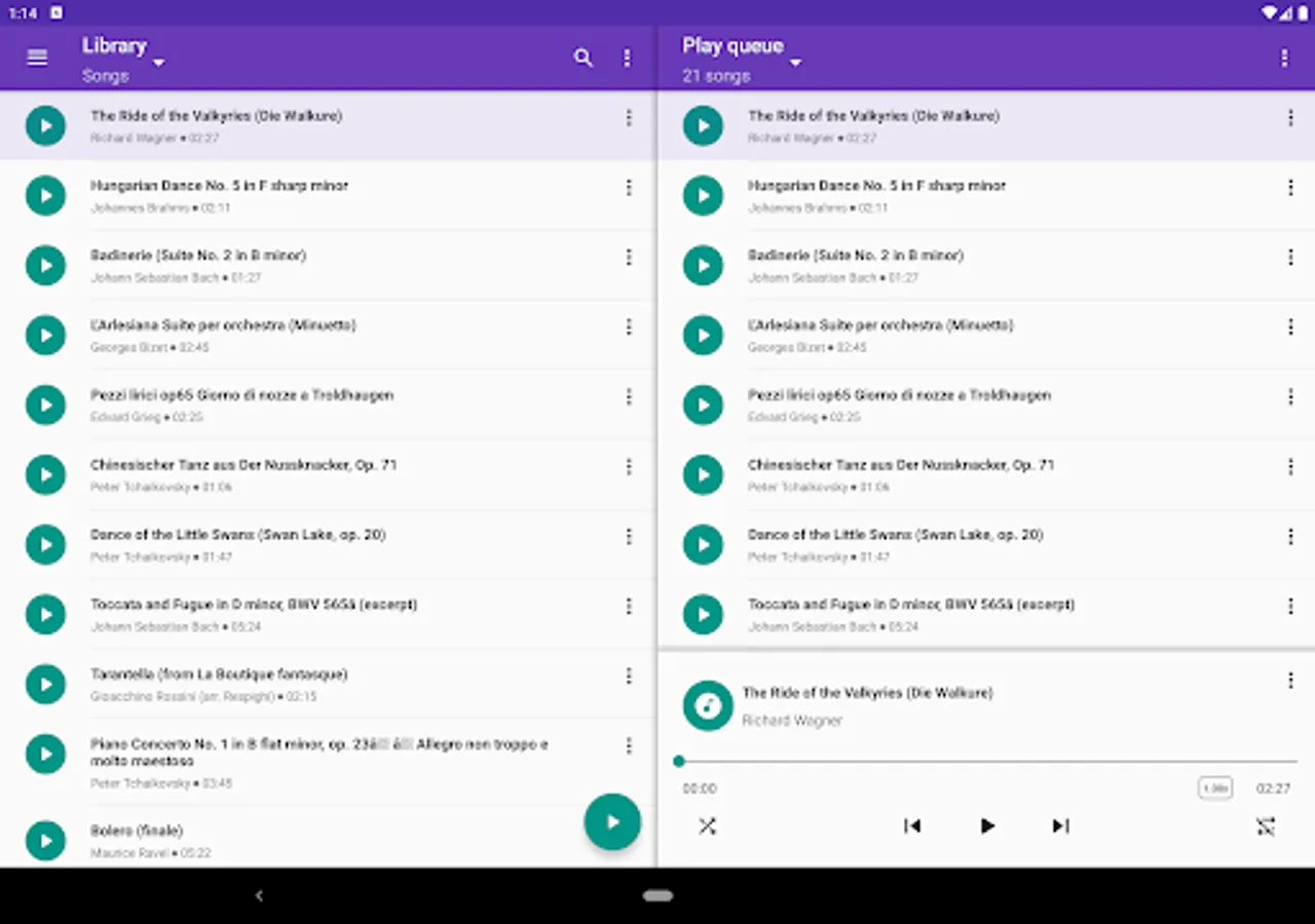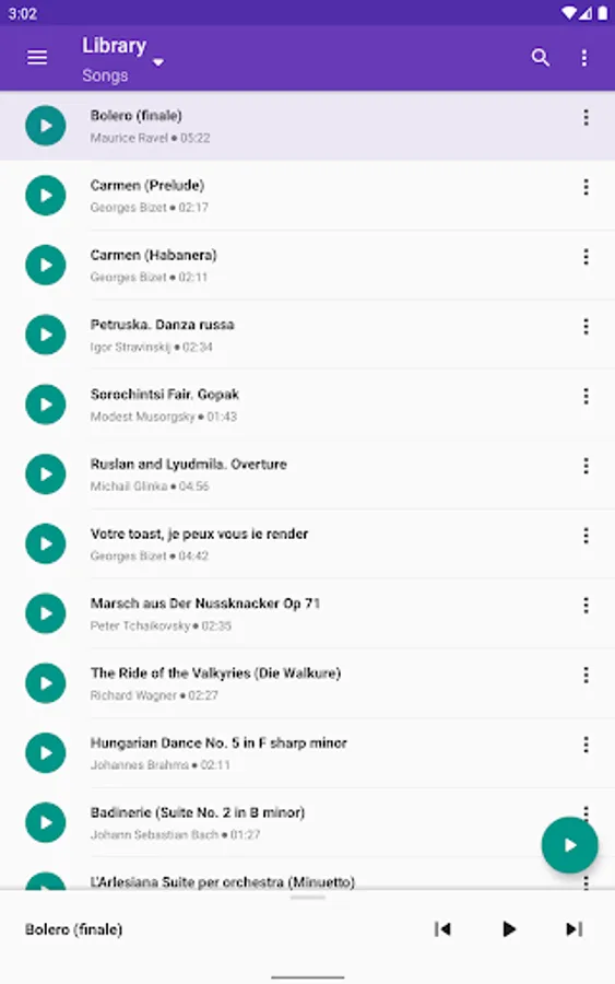 • Display music library on the device, by compositions, folders, artists or albums.