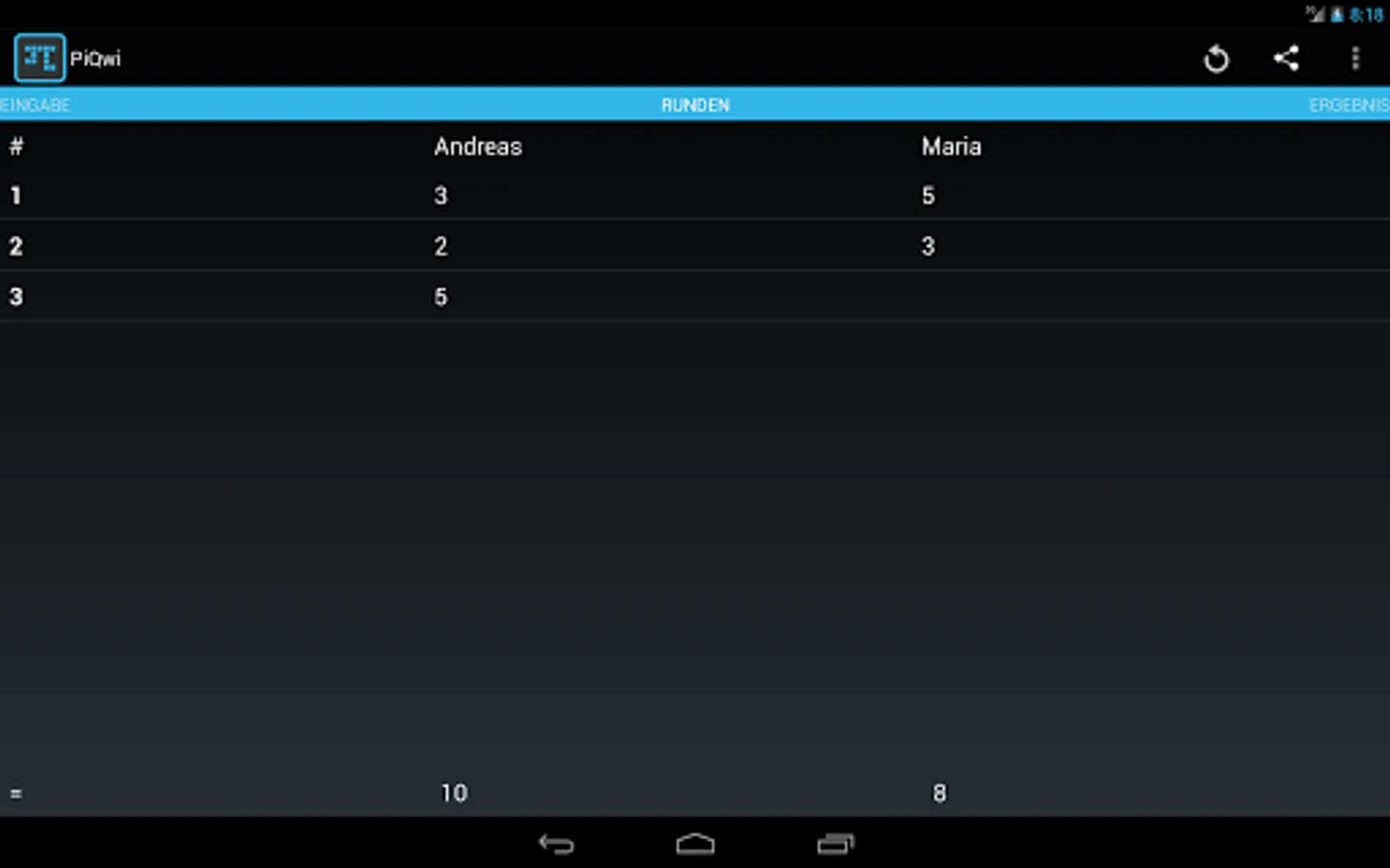 PiQwi makes playing super easy. Put your players into PiQwi, enter the points in each turn, and in the end you will see who won. It is simple and quick, without much distraction. With PiQwi, you can you focus more on the game and are less concerned with writing the points down.