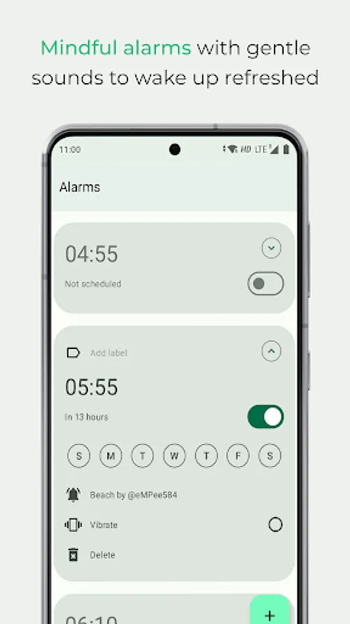 • Start your days to the gentler sounds of nature with mindful alarms