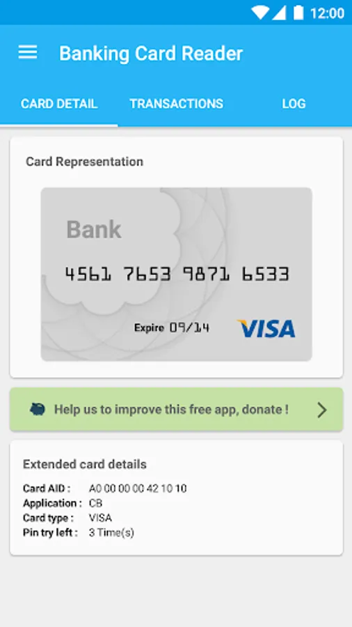 This app was designed to allow users to read the public data stored on their NFC-compliant EMV banking cards, such as credit cards. EMV (Europay, Mastercard, and Visa) is a global standard for interbank transactions that utilizes microchips to store and protect data. In order to use this app, your card must be NFC (Near Field Communication) compliant, which means it is equipped with a microchip that allows it to communicate with NFC-enabled devices such as this app.