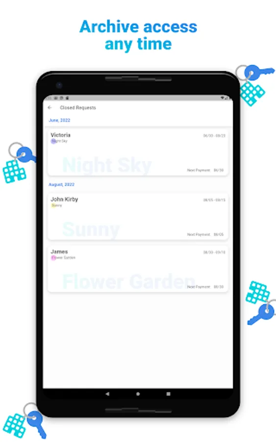 Our solution is suitable for all types of rental properties: apartments, hotels, guest houses, villas, hostels, holiday homes, etc. If you are a property owner or property manager, this is the app for you!