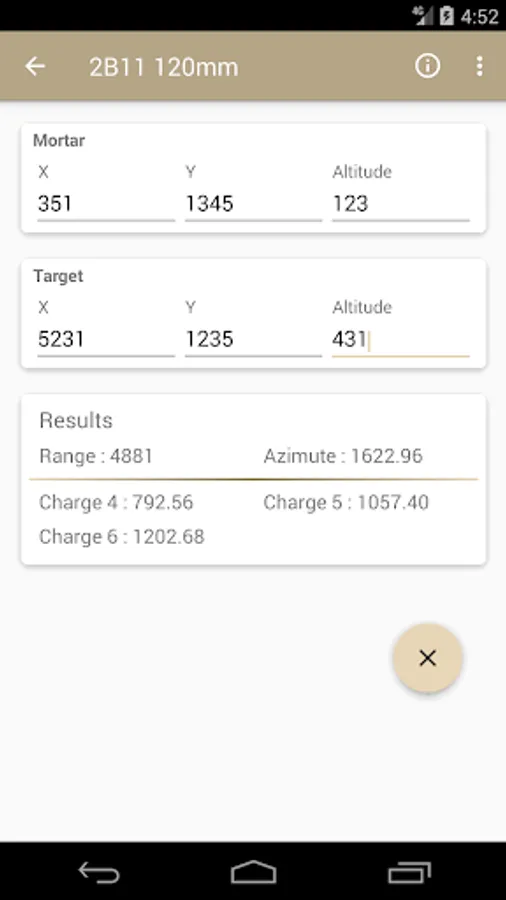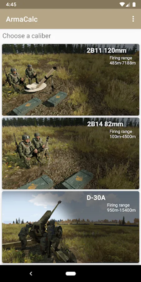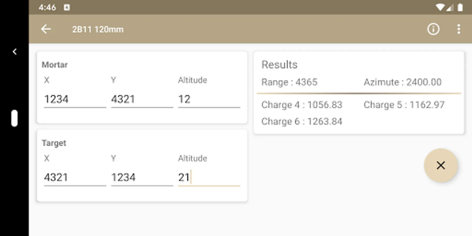 Ballistic calculator for mortars in computer game Arma 3 by Bohemia interactive.