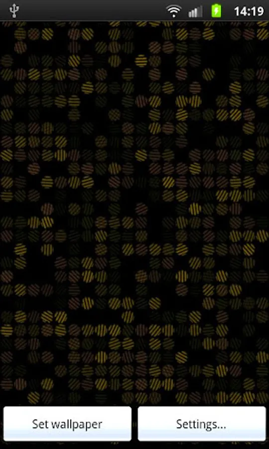 There are three modes: in colour changing mode, the dots change colour smoothly over a configurable period. In reflect light mode, the device's orientation is used to simulate light reflecting off the dots. As you tilt the device, the colour of the dots fade in and out in response. In single colour mode, the dots are all one colour but change in intensity. The size of the dots is configurable in all modes.