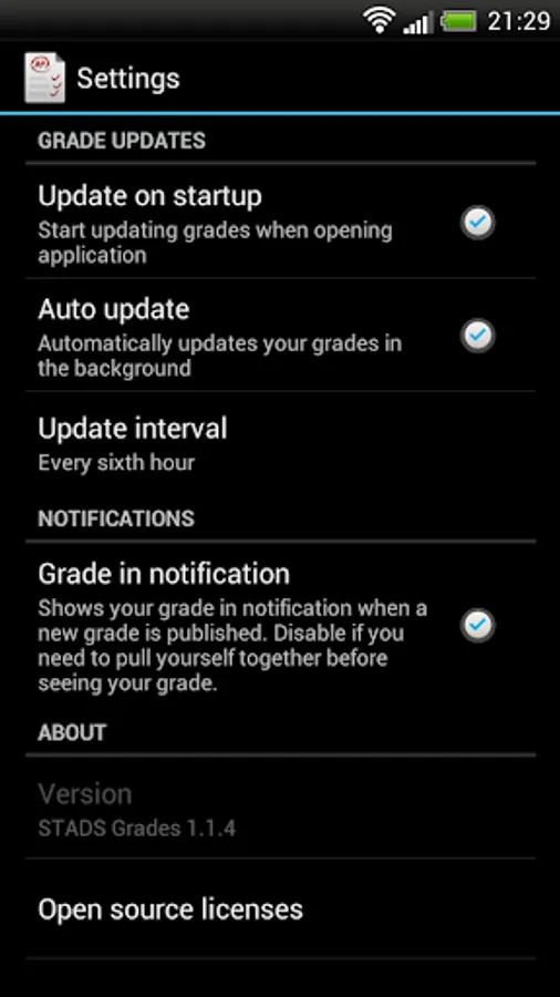App that can download grades from STADS selfservices on three Universities: