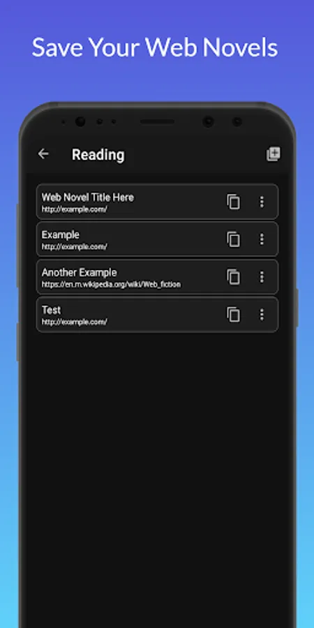 • You can create a list of Web Novels inside each folder by giving each item a Title and URL.