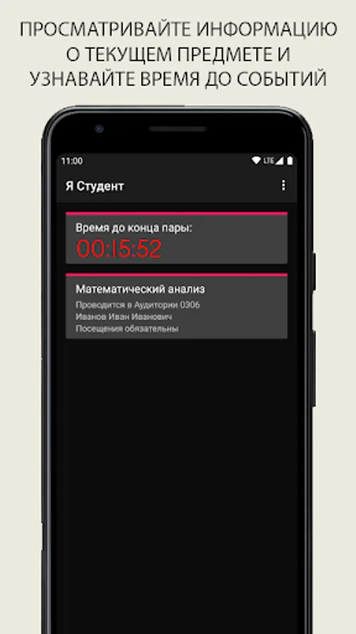 I am a Student is an organizer of study sessions for students, the main feature of which is to display information about the current subject, along with a convenient timer that allows you to find out the time until the end or start of the class.