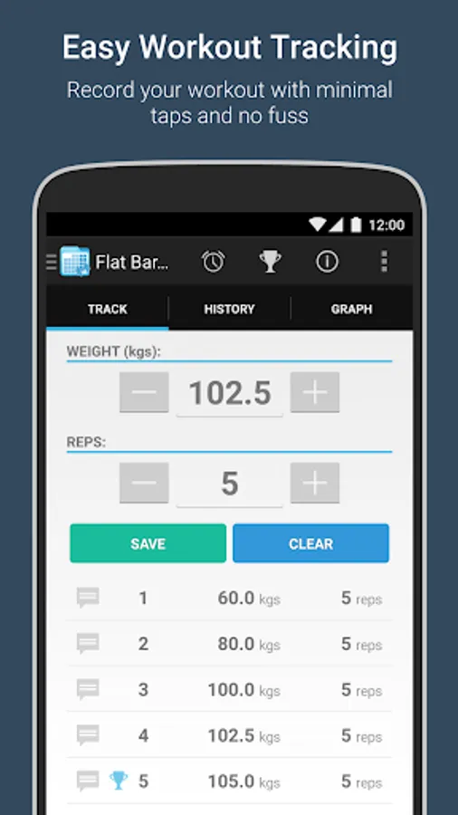 - Add an exercise to the workout log and record sets of weight and reps or distance and time
