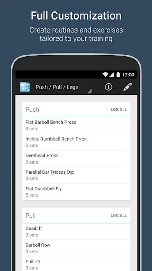 - Includes a default selection of categories (Chest, Back, Legs, etc)