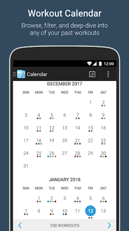 - Tap a day in the calendar to display a popup listing the exercises performed on that day