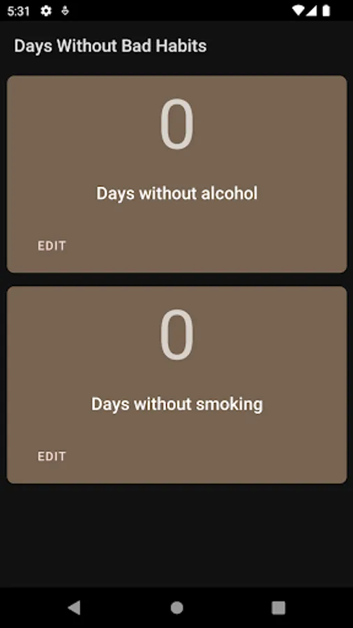 Have you ever tried to refuse bad habits? Use this application to monitor how many days passed