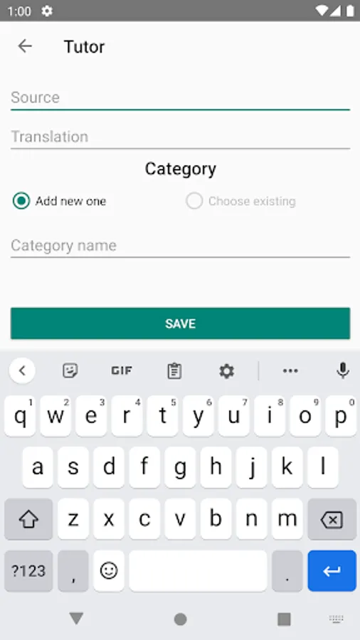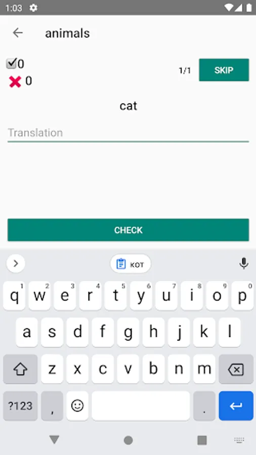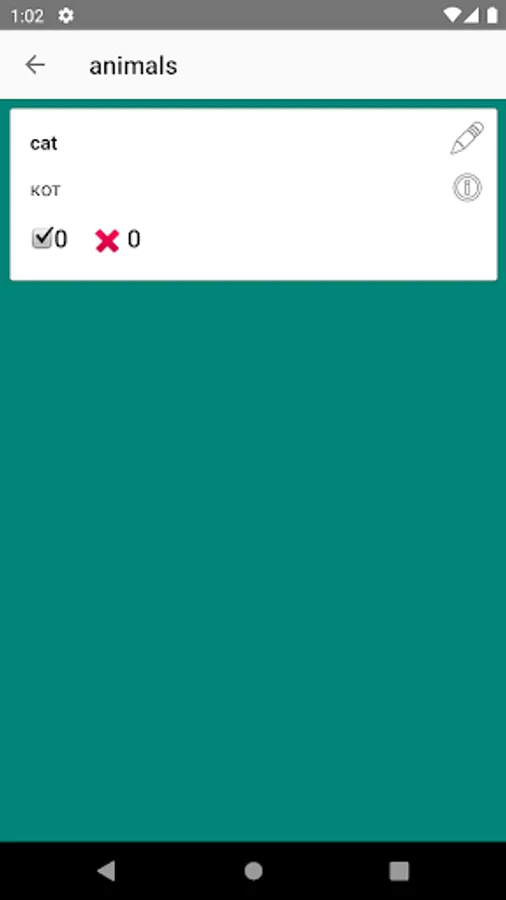 First you need to create category, then add some pairs to be learned. Just type source you want to see in card, and then type the meaning/translation of that word or phrase and just click save. Then you can move items, edit them and see the progress: how many times you typed correct and incorrect. Also you can skip item, delete it and the whole category. All the data is saved locally.