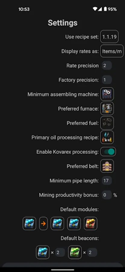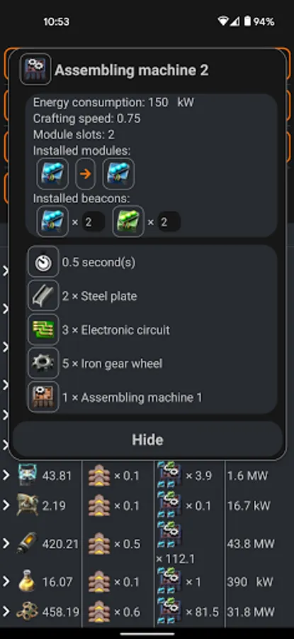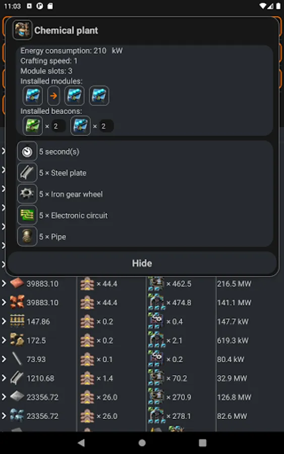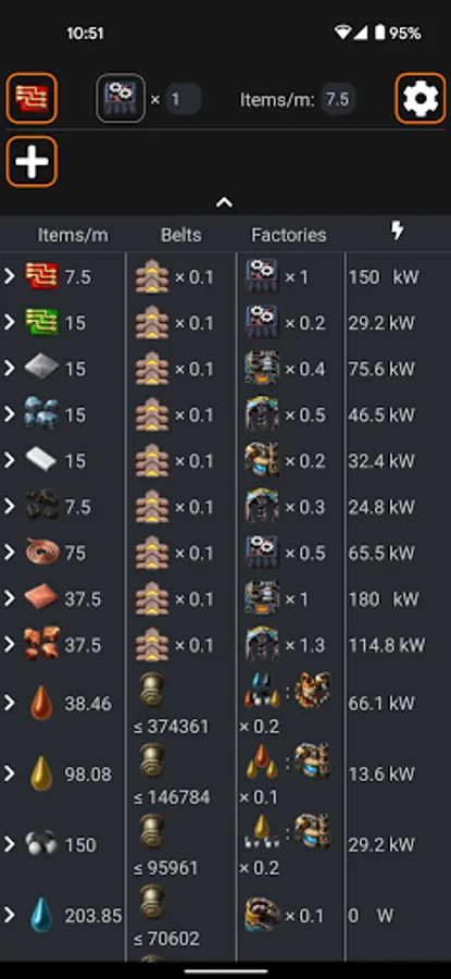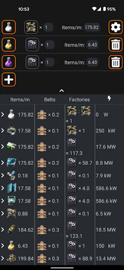 Very easy to use calculator for the Factorio game. Just pick the required item, specify the required rate or the number of factories, and see the factory plan in the app! Draft your factory in one click.