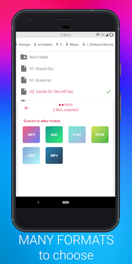 Currently supported output format: AAC, FLAC, MP3, OPUS, OGG, WAV, MP4,... and more with custom command.