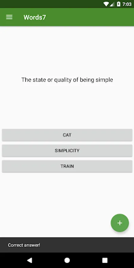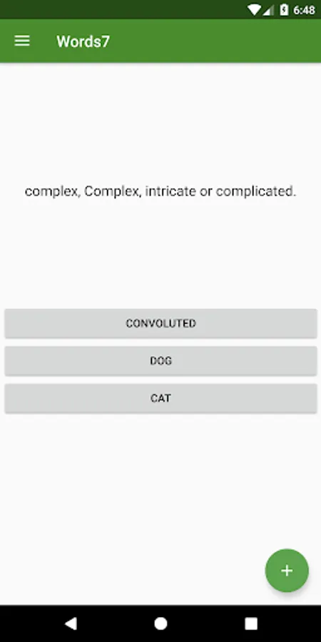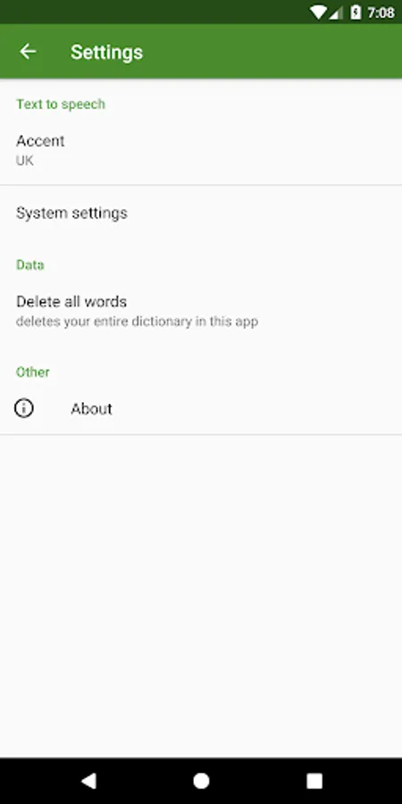 Words7 is meant for intermediate and advanced English learners. Downloaded word definitions are in English and so are the spoken messages in the app.