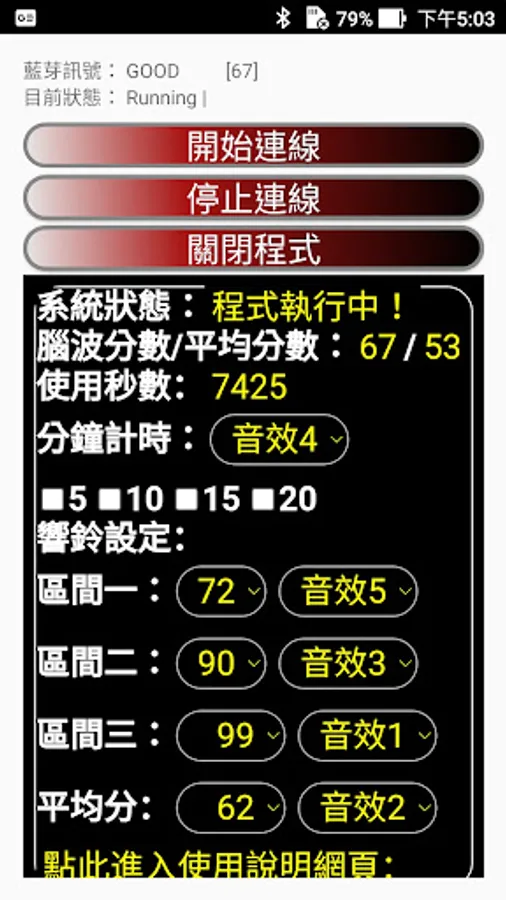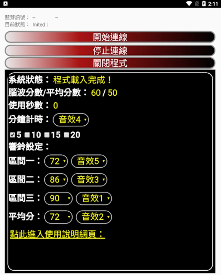 This program is mainly able to distinguish the brain wave score between 72-85 points, 85-90 points, and music prompts above 90 points. Moderator, the main reason for writing the program is that the free eeg meditation program written by the Russians has the disadvantage that the meditation wave that can only be set above x points will have a white noise prompt. If he can make these three kinds of prompts, the moderator will save trouble and don't need to write this program. What's more obvious is that when the bell continues to ring for more than 72 minutes, there is a chance to rise to the 90-minute meditation wave. Assuming that only 90 points are set, the waiting process will be silent and easy to annoy. For example: wonder what meditation wave is now? Will the brainwave or computer malfunction? Destroyed meditation. If there are music cues between 72-90, at least when the eyes are closed for the test, you can rely on the music cues to know the current brainwave score.