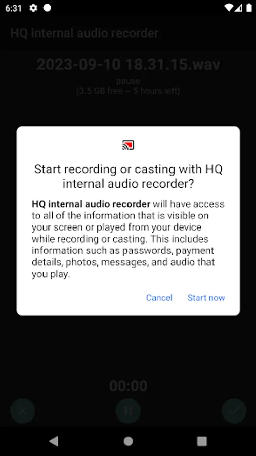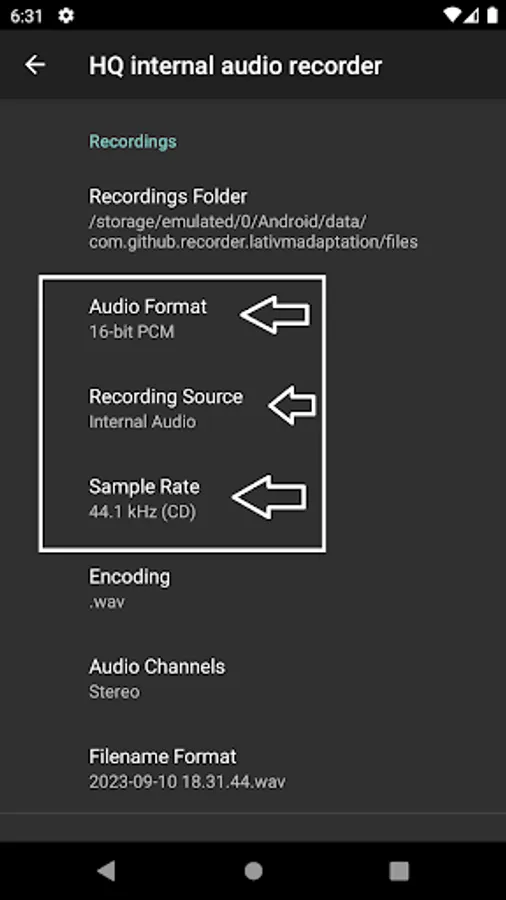 - Recording source - Internal audio