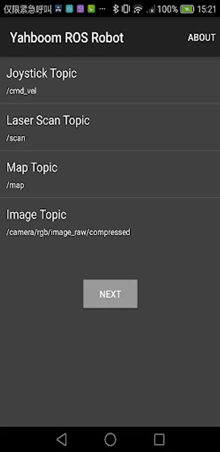 The APP includes company information, ROS topic modification, remote control of ROS car with rocker, viewing camera images, drawing and navigation with ROS car, etc.