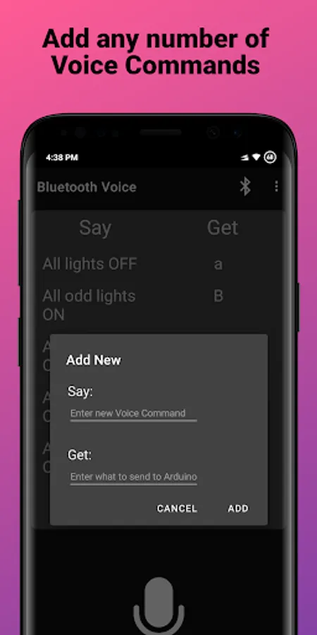 This app will send voice commands directly to serial or map your commands to anything you want to send in its place.