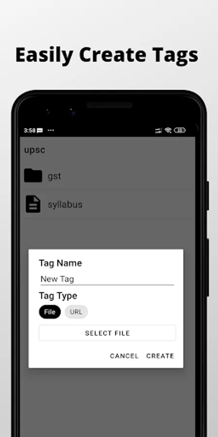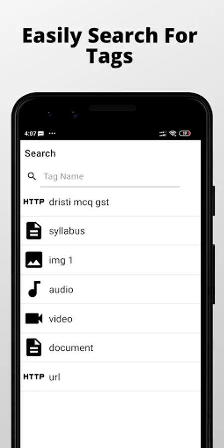 - Create Tags/Bookmarks of Photos, Videos, Audio, URL or any document you want.