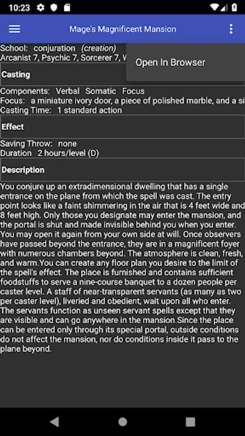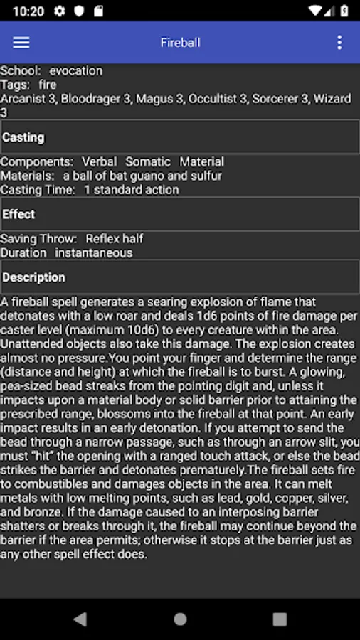 Traveling Spellbook is the perfect companion for the Pathfinder player on the go. This app provides rules information for all first-party spells, in a convenient offline format.