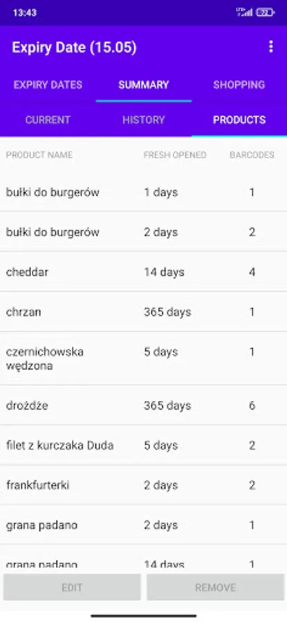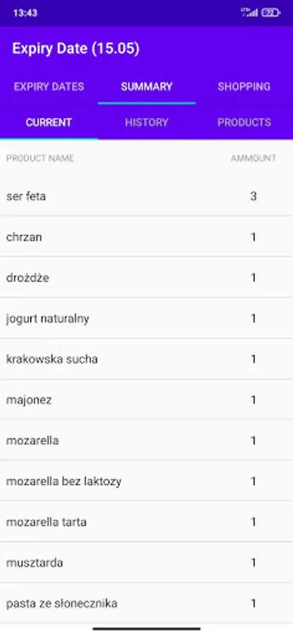 2. Show summary of the products in your fridge