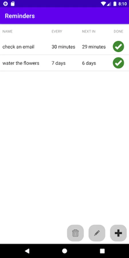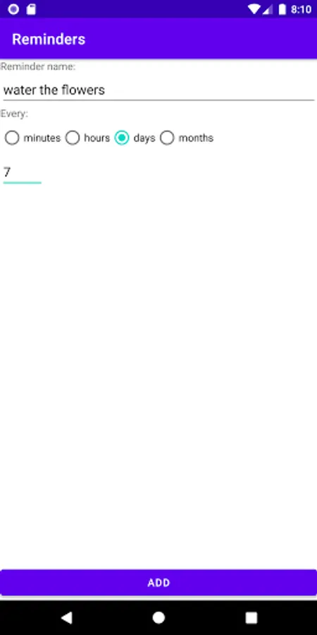As an example let's say that you are watering the flowers every week. You can add reminder for every 7 days and after you watered the flowers you just click a button in the app and it will remind you about next watering in 7 days.