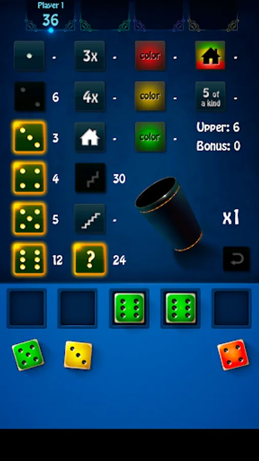 At the beginning of each round, the computer secretly rolls 15 dice, and the outcome of each player's rolls will be the same (provided, of course, that they chose to re-roll the same number of dice). It's a more strategic version of the game. Only available in Custom Mode.