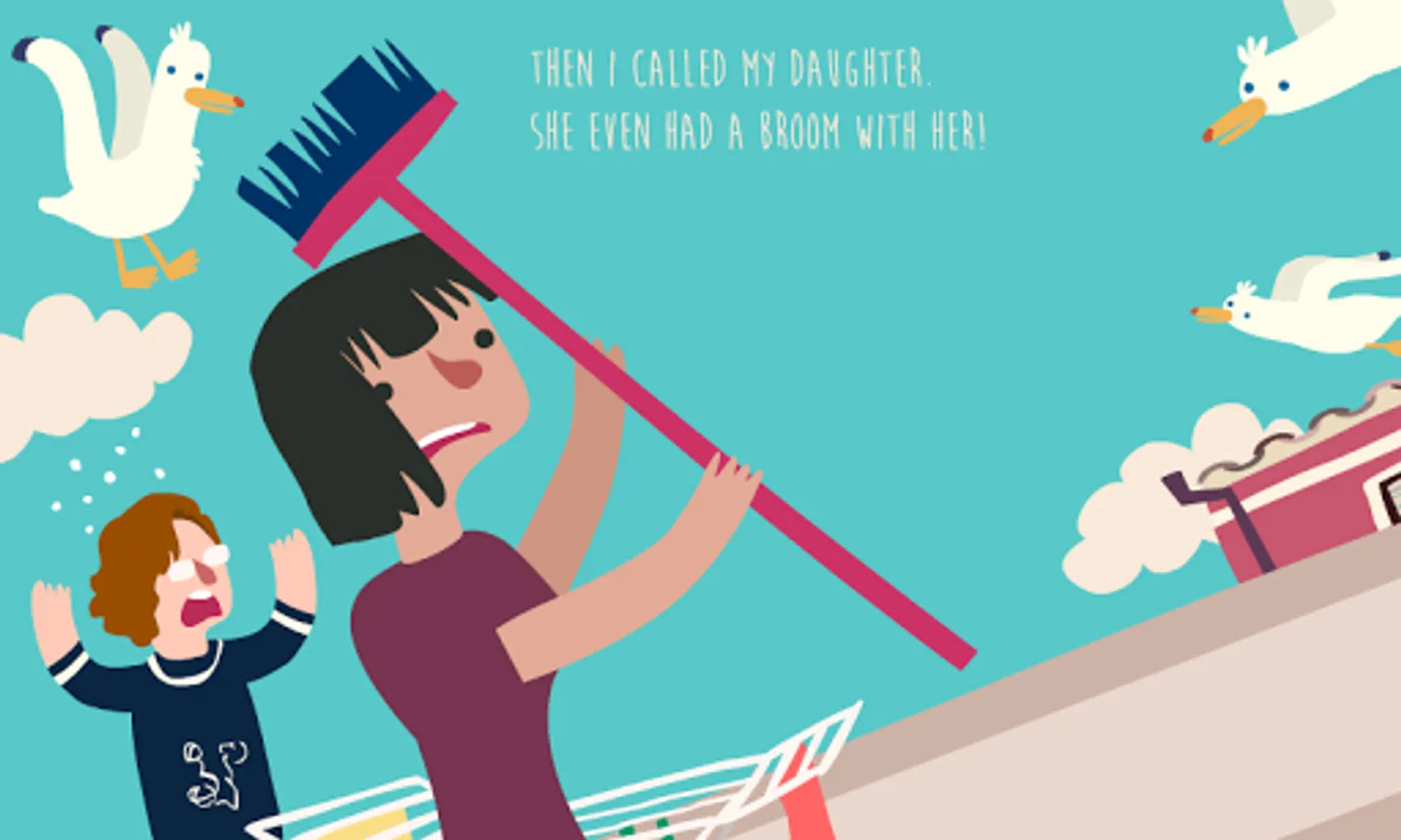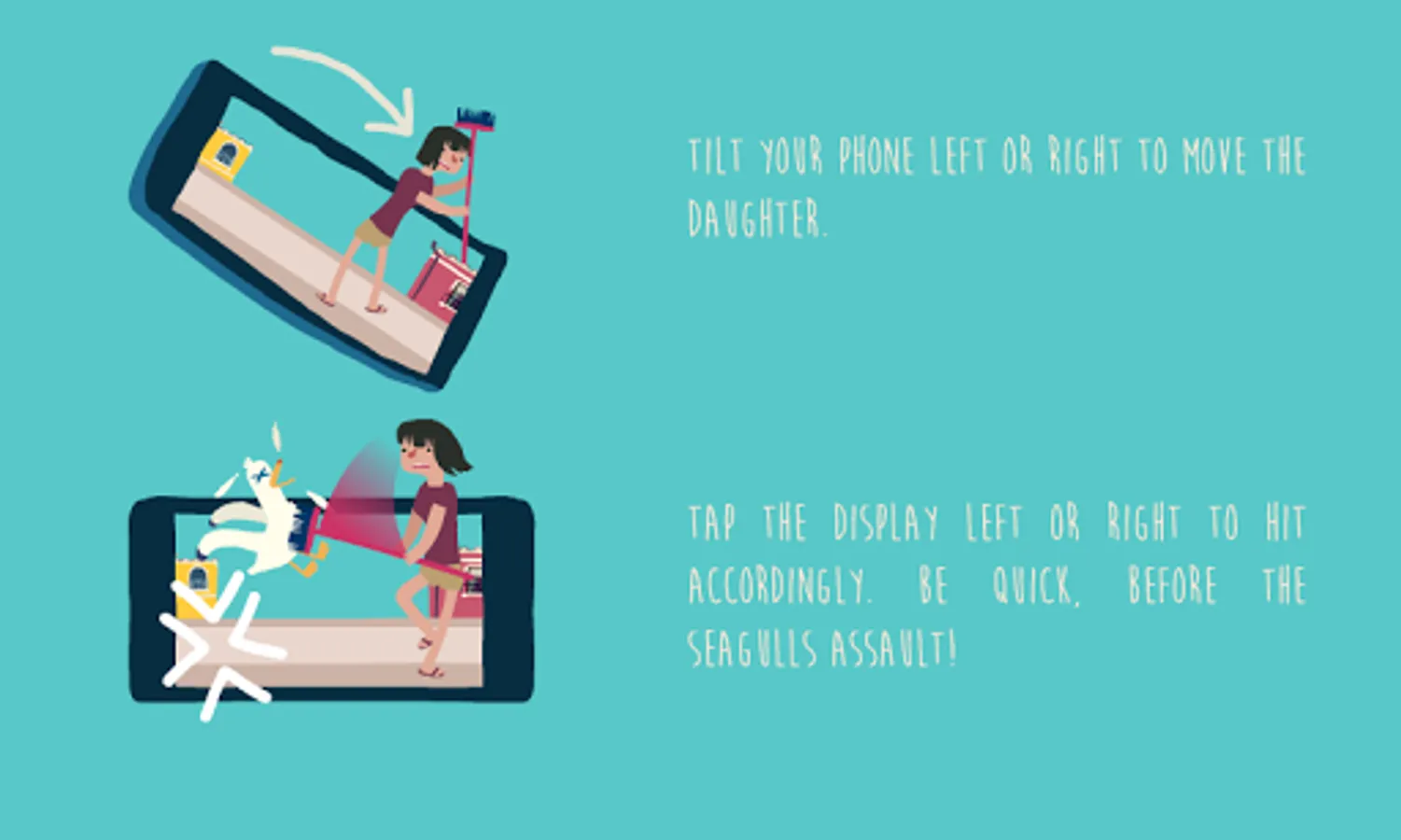 Tilt your phone left or right to move the daughter. Tap the display left or right to hit accordingly. Be quick, before the seagulls assault! woowoo!