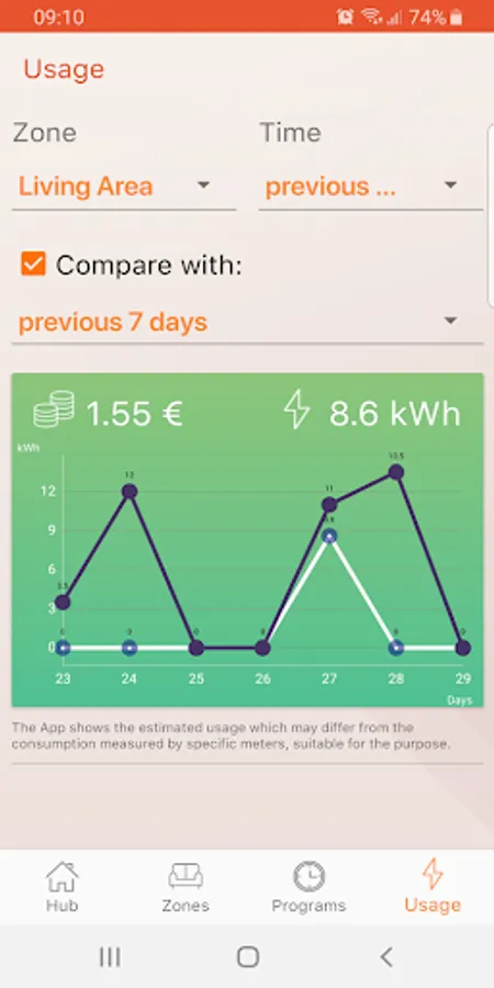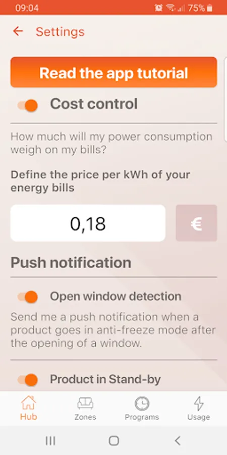 - Real time Energy consumption report and statistics for the last 24 hours, 7 or 30 days and estimated costs per single radiator or zone.