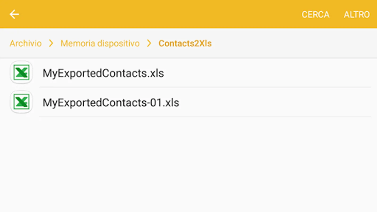 The xls file is called MyExportedContacts and will be saved under the folder Contacts2Xls. Columns are name, telephone and the fields related the google account, so that you can keep your Contacts in sync...