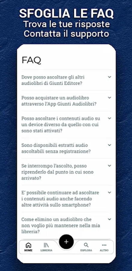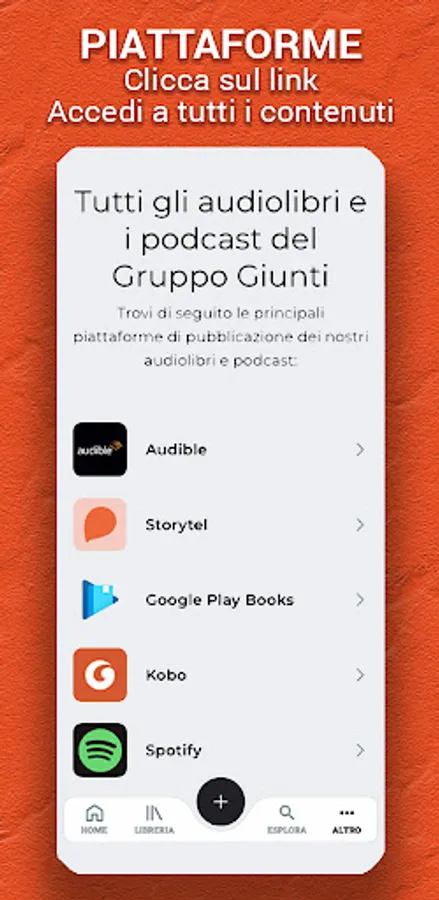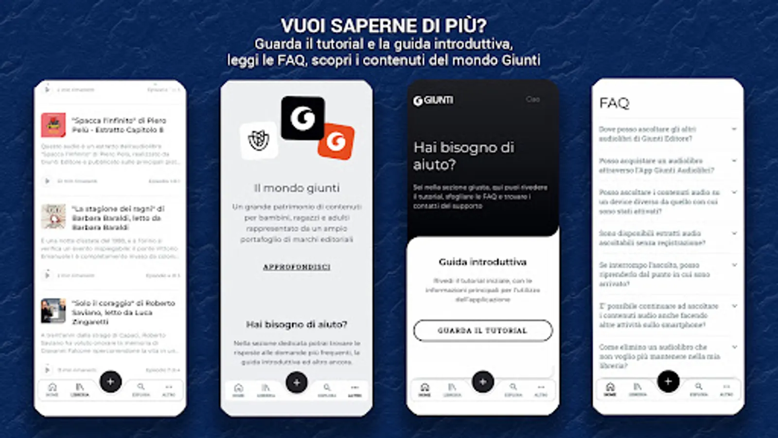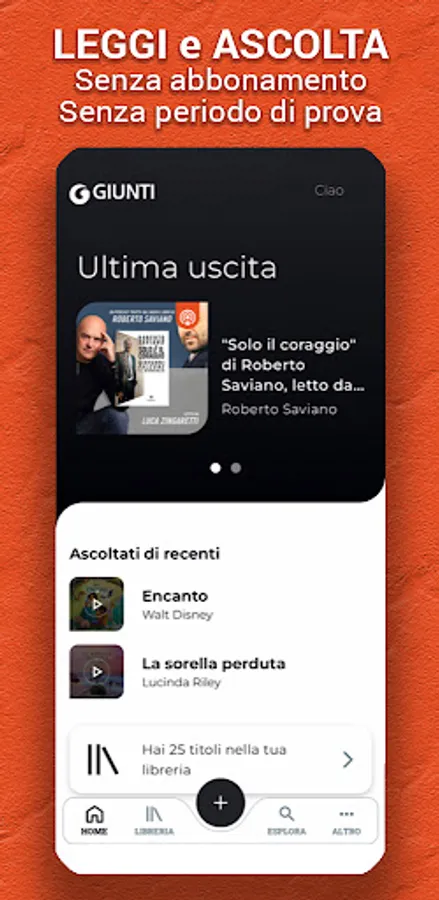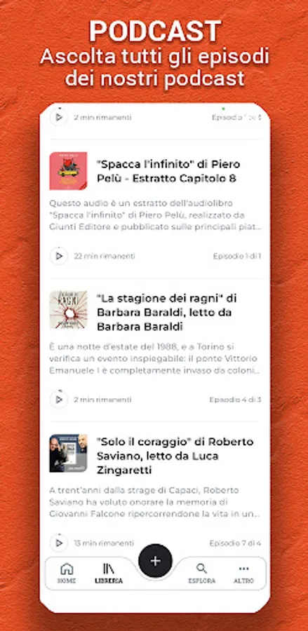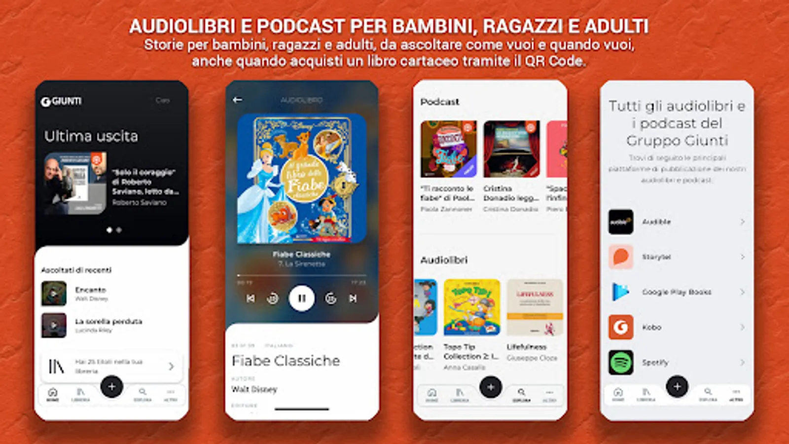 A two-sided application then. On the one hand, listening to audiobooks and podcasts associated with the purchase of the paper book or which can be purchased in special packaging and packaging, on the other hand, the freedom to listen to the contents that Giunti Editore makes freely available to users.