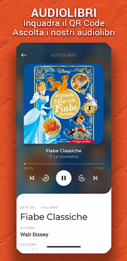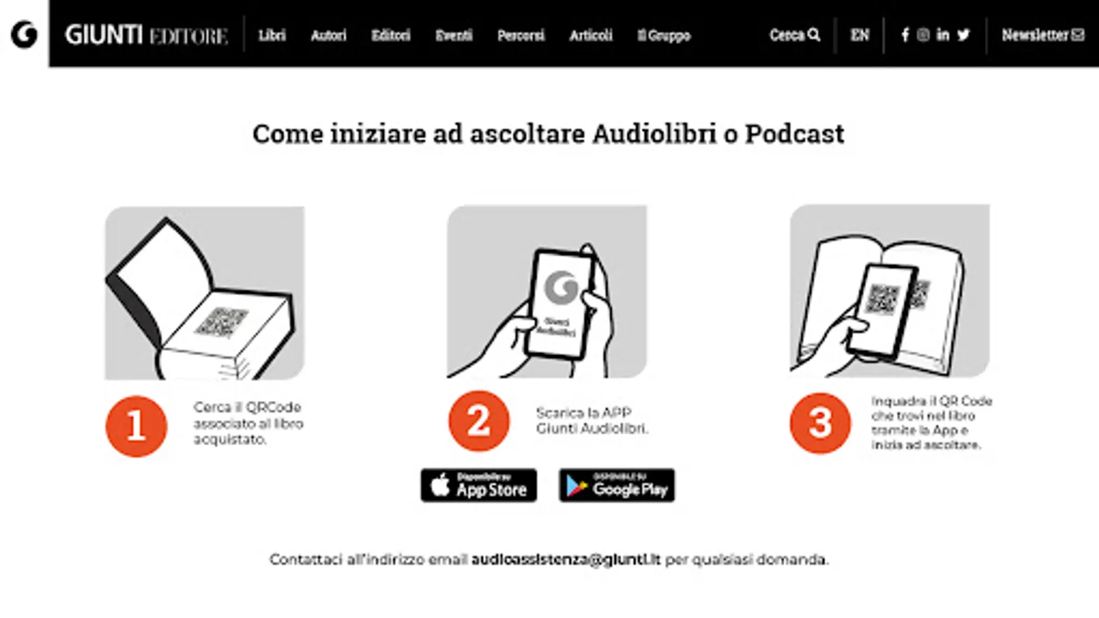 The Giunti Audiobooks App has been designed to give you the opportunity to listen to audio content (audiobooks and podcasts) linked to the books you buy in bookstores, large-scale distribution or online stores. Through a QR Code that you find in the book, you can combine reading and listening and live a more rewarding reading experience.