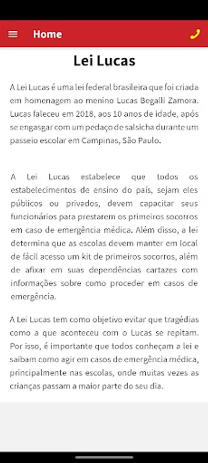 The App "SOS Lei Lucas" is a tool that offers guidance and videos on first aid based on the Lucas Law. With instructions and explanatory videos, the application helps people to act quickly in emergency situations. It can be accessed offline and is useful for teachers, students, parents and anyone interested in learning first aid skills. Download the app and be prepared to act in emergencies.
