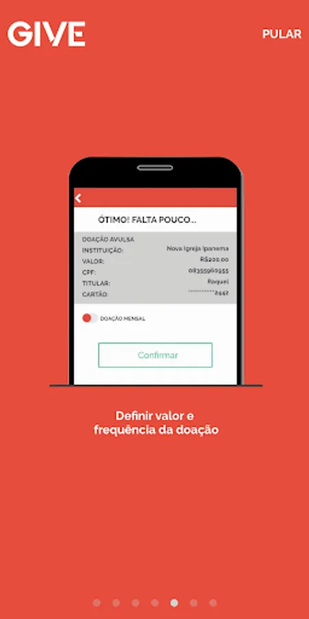 It's easy: just insert the invitation of the institution you want to help, register your card, define the amount and frequency.