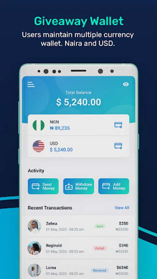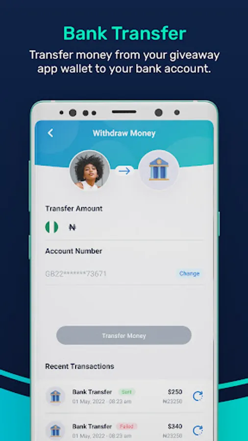Your money is always safe and secure on Giveaway App. You can send this money to anyone, receive money from any one, withdraw your money at any connected POS terminal and even send your money to your personal bank account which is connected to Giveaway App.