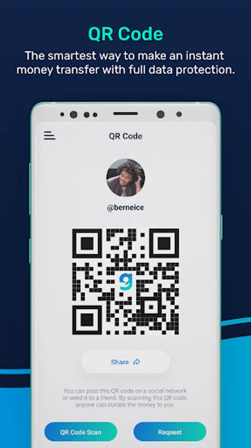 Participate in social media giveaways by just sharing your code. Friends can send you funds by pointing their cell phone to your code and payment can be made via USD and Nigerian Naira.