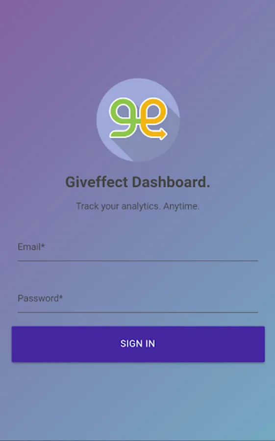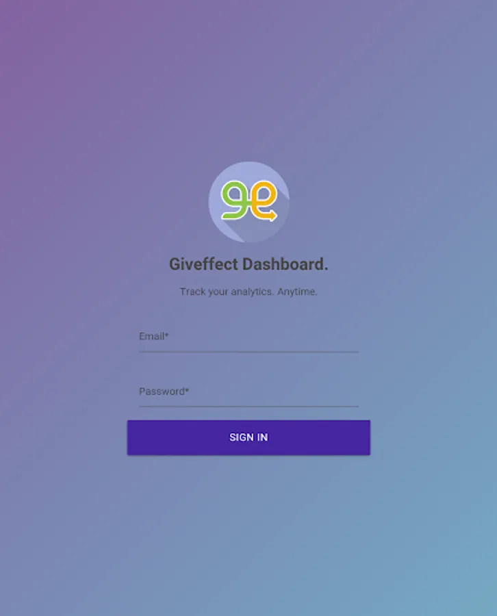 Users must have an account with Giveffect to manage their nonprofit organization with this app. Simply login using your account credentials to access your organization's analytics.